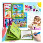 - Reusable Water Painting: No ink or paints needed. Just fill the included pen with water and watch as vibrant colors appear on the pages. Once the water dries, the images disappear, allowing kids to paint again and again, promoting sustainability and creative fun.